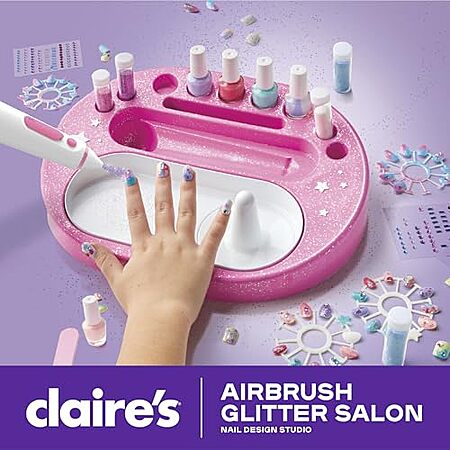 $19.31 | Claire's Kids Nail Art Kit, 67-Piece Airbrush Glitter Salon Nail Charms & Accessories Set at Amazon