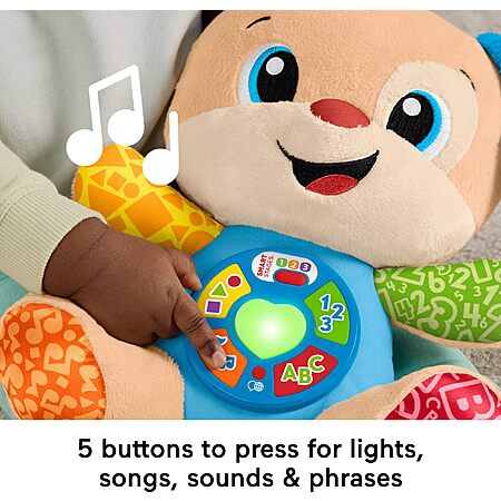 - Introduces baby to first words with lights and 80+ songs, sounds and phrases