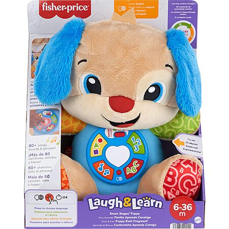 Fisher-Price Baby Learning Toy Laugh & Learn Smart Stages Puppy Musical Plush (Multilanguage Version) for
