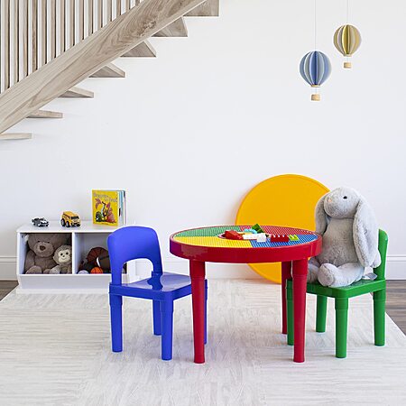 Humble Crew, Red/Green/Blue Kids 2-in-1 Plastic Building Blocks-Compatible Activity Table and 2 Chairs Set - $29.25 at Amazon