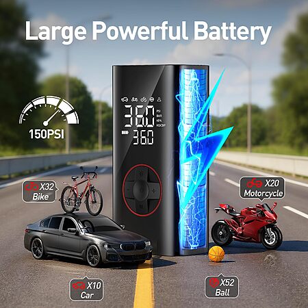 Teffim Portable Tire Inflator 150PSI Cordless Air Compressor w/ Pressure Gauge $12.99 + Free Shipping w/ Prime or on $35+