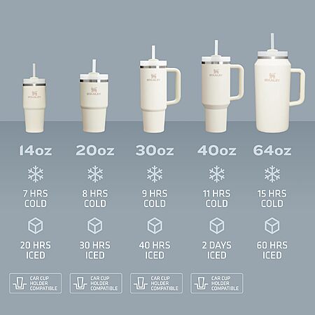 - YOUR DREAM TUMBLER: Whichever way your day flows, the H2.0 FlowState tumbler keeps you refreshed with fewer refills. Double wall vacuum insulation means drinks stay cold, iced or hot for hours. Choose between our 14oz, 20oz, 30oz,40oz and 64oz options depending on your hydration needs. The narrow base on all sizes (except 64oz) fits just about any car cup holder, keeping it right by your side.