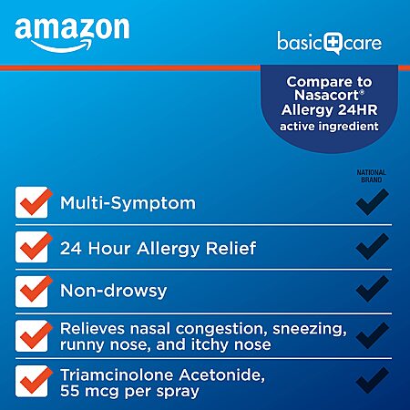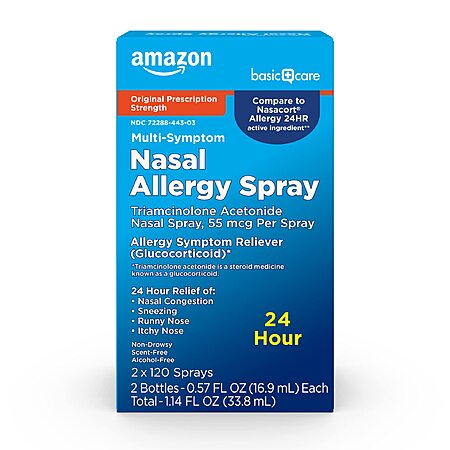 2-Pack Amazon Basic Care Multi-Symptom Triamcinolone Acetonide Nasal Allergy Spray (55 mcg, 0.57 fl oz) $11.84 w/ S&S + Free Shipping w/ Prime or on $35+