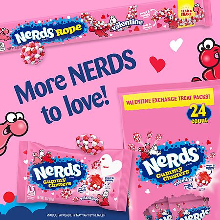 24-Pack 0.92oz NERDS Rope Valentine Candy, Sweet and Sour Candy Individually Wrapped $23.74 (99c Ea)+ Free Shipping w/ Prime or on $35+