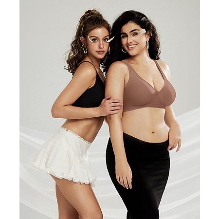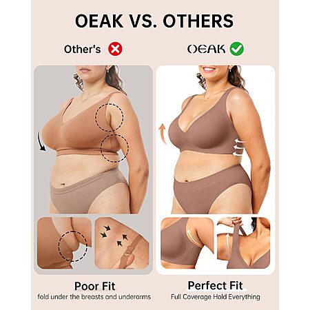 OEAK Womens Deep V Bras Wireless Comfortable Bra Supportive No Underwire Bras Tshirt Push Up Bralettes Plunge Seamless Bra Coffee M $18.98