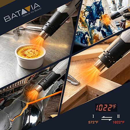 • 【Stable Hands-Free Kit】Boost productivity with the built-in metal stand, enabling secure hands-free operation. The complete kit includes the BATAVIA heat gun, a concentrate nozzle, and user manual. A reliable, professional tool for efficient work on shrink tubing, crafts, and repairs