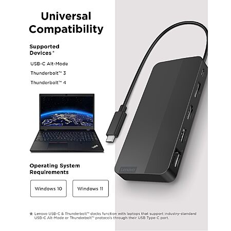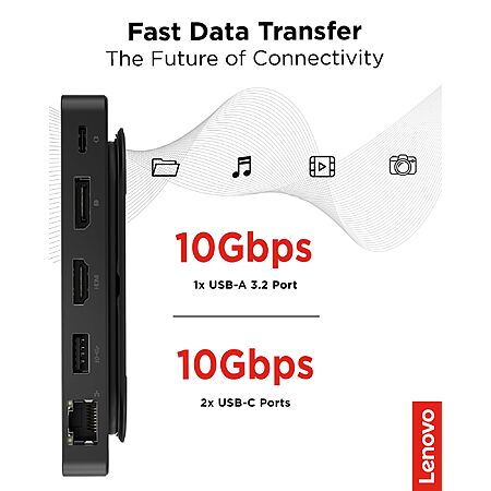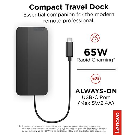 Lenovo USB-C Dual Display Travel Dock w/ 100W Power Adapter 7 Ports (Black) $75.99 + Free Shipping