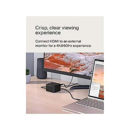 - 6-IN-1 EXPANSION: This compact, multifunctional Belkin dock provides access to ports that newer laptops no longer accommodate while increasing your productivity with additional USB-C, USB-A, HDMI, and GbE ports, connected through a single connection.