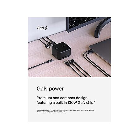 - 130W GAN POWER + FAST CHARGING: A built-in PSU and the latest GaN technology help this dock deliver up to 96W of power to your host device, reducing total size while letting you charge devices faster, more efficiently, and safer than competing chargers.