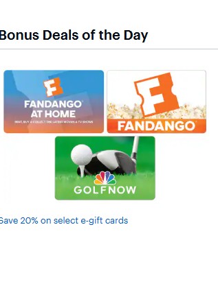 Best Buy: Fandango+ Golf Now Gift Cards 20% off