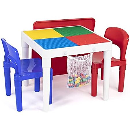 $29.25 | Humble Crew Kids Activity Table and 2 Chairs Set, White/Blue/Red at Amazon