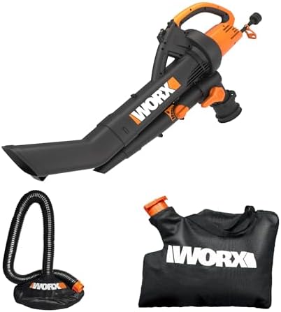 Model: WORX Trivac 3 in 1 Electric Leaf Blower for Lawn Care, Leaf Vacuum with 350 CFM & 210 MPH, Leaf Mulcher with Metal Impeller, Reusable Bag Included, WG505.2