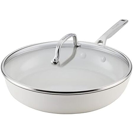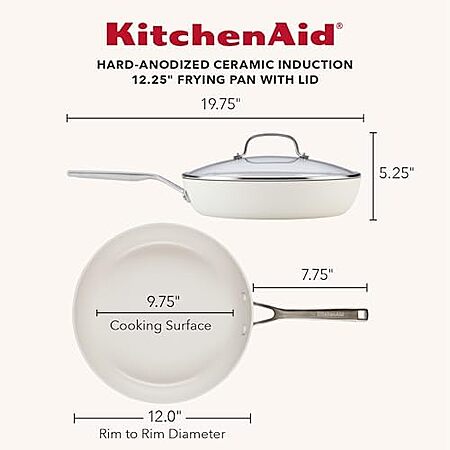 $62.99 | 12.25″ KitchenAid Hard Anodized Ceramic Induction Nonstick Cookware Frying Pan/Skillet with Lid (Porcelain) at Amazon