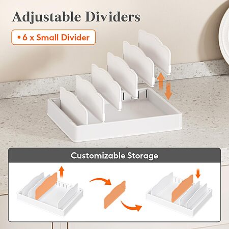 13" x 10" Lifewit Plastic Lid Organizer w/ 6 Adjustable Dividers & 7 Compartments $7.94 + Free Shipping w/ Prime or on $35+