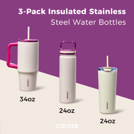 3-Piece (34-Oz + 2x 24-Oz) Carote Insulated Stainless Steel Bottle & Tumbler Set (Pink) $22.99 + Free S&H w/ Walmart+ or on $35+