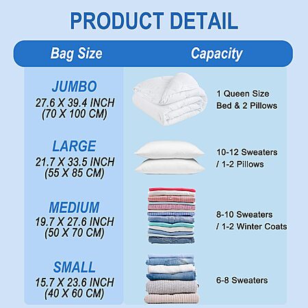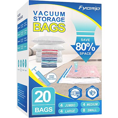 $15.98 Fygrip Vacuum Storage Bags with Hand Pump, Plastic Packaging Bags, 80% Space Saver Vacuum Seal Bags at Amazon
