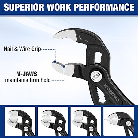 WORKPRO 2-Piece 7-Inch Pliers Wrench & 10-Inch Groove Joint Pliers Set, Quick Adjustment, CR-V Steel, Smooth Jaw & V-Jaw, Upgraded Wide Opening, Ergonomic Grip - for Plumbing, Pipe Work, DIY Projects. Free Shipping w/Prime or $35+.