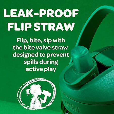 $11*:CamelBak Crayola Flip Straw Kids Water Bottle, Tritan Renew, Spill-Proof, 14oz, Green at Amazon
