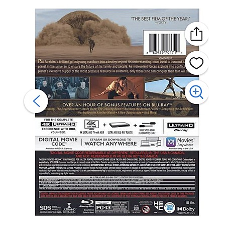 Dune (4K Ultra HD + Blu-ray) + Digital $13 Free Shipping Walmart.com