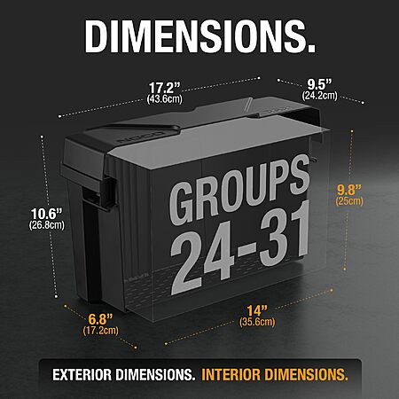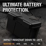- Ultimate Battery Protection - A reinforced design with a honeycomb lattice structure makes it one of the most rugged battery boxes ever designed, with impact resistance down to -20ºF (-28ºC) and resistance to acid, gas, UV, and oil.