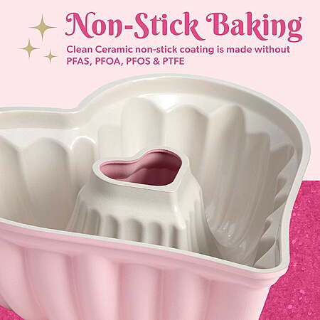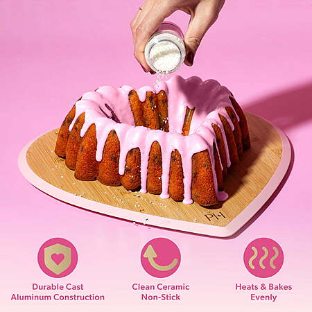 Paris Hilton Premium Nonstick Heart Shaped Fluted Pan, Dishwasher Safe, 9.5-inch, Pink $29.97