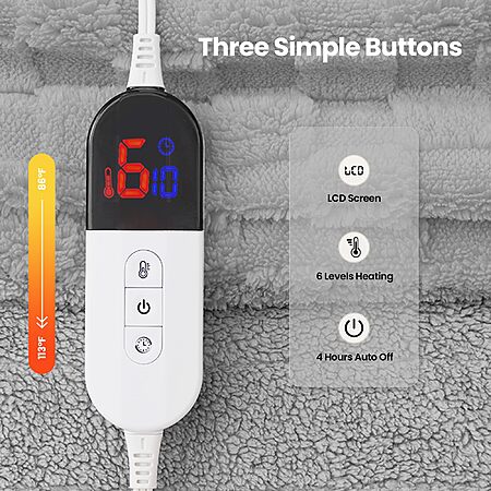 Heated Blanket, 50x60 Inch Electric Blanket, Throw Blanket with 6 Heat Settings and 1-4H Auto Off Timer, Machine Washable, Soft Flannel Fleece for Couches $27.99