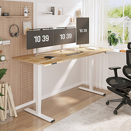 Inbox Zero 3-Stage Dual Motor Standing Desks w/ Solid Wood Top (White Frame/Natural) 63" $340, 71" $390 + Free Shipping