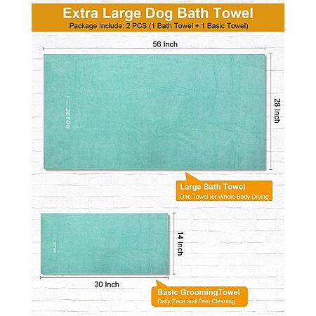2-Pack JETOG Ultra-Soft & Absorbent Pet Bath Towels (Green) $10.95 + Free Shipping w/ Prime or on $35+