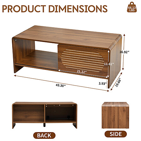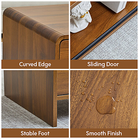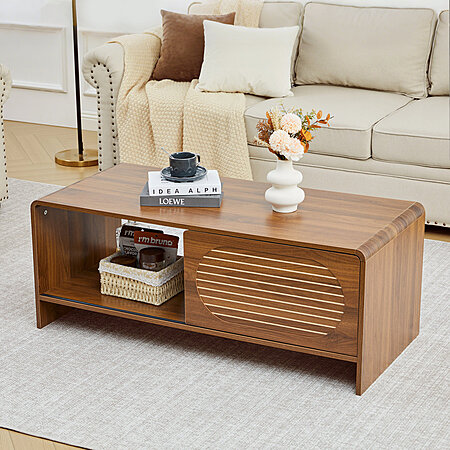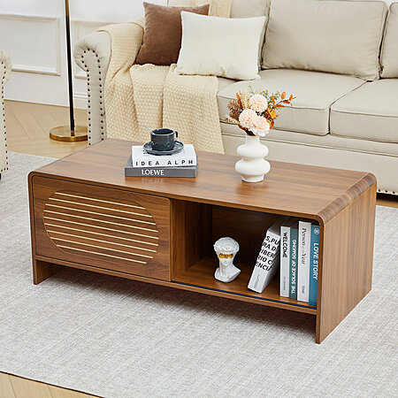 Ebern Designs W Mid Century Modern Rectangular Coffee Table w/ Storage & Sliding Door $79.99 + Free Shipping