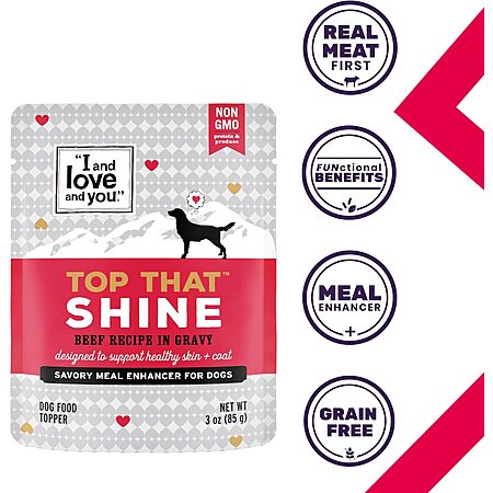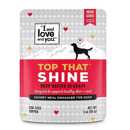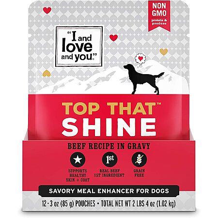 S&S "I and love and you" Top That Shine Wet Dog Food Pouch, Beef Recipe In Gravy, 3 oz (Pack of 12) for $7.79 $7.89