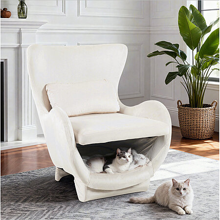George Oliver 2-In-1 Pet Friendly Modern Velvet Lounge Chair (White)