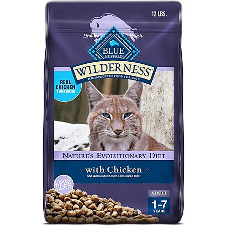12-Lbs. Blue Buffalo Wilderness Natural Adult Dry Cat Food Bag (Chicken)
