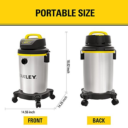 $61.46: Stanley - SL18129 Wet/Dry Vacuum, 4 Gallon, 4 Horsepower, Stainless Steel Tank Silver+yellow, Silver + Yellow + Black at Amazon