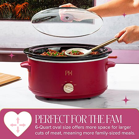Model: Paris Hilton 6-Quart Manual Slow Cooker, Features Three Settings (Low, High, Warm), Naturally Nonstick and Dishwasher Safe Stoneware Insert, Family Sized Capacity, Berry