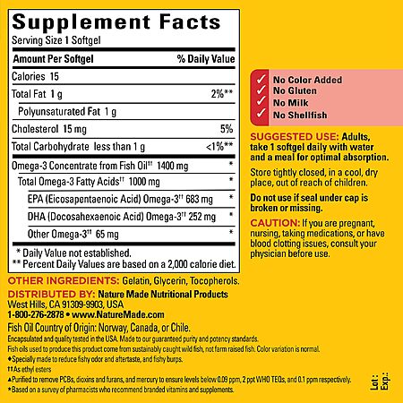 90-Count 1400mg Nature Made Burp Less Ultra Omega 3 Fish Oil Softgels $5.39 w/ S&S + Free Shipping w/ Prime or on $35+