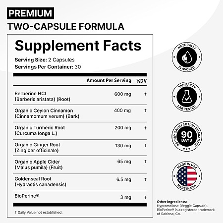 Model: Berberine HCL 1400mg with Ceylon Cinnamon to Support Digestion & Metabolism - 7 in 1 Berberine Supplement, Ceylon Cinnamon, Bioprene, Turmeric, Ginger, Goldenseal & Apple Cider Complex - 60 Capsules