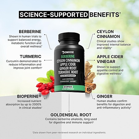 DMoose via Amazon[amazon.com] has Berberine HCL 1400mg with Ceylon Cinnamon to Support Digestion & Metabolism (60-Count) on sale for $15.99 - $4.80 off when you 'clip' the coupon on page - 20% off w/ Subscribe & Save checkout = $7.99. Shipping is free w/ Prime or $35+ orders.