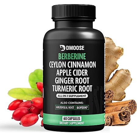 60-Count DMoose Berberine HCL 1400mg w/ Ceylon Cinnamon Supplement Capsules