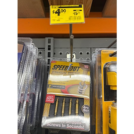 Home Depot has the Titanium SpeedOut Damaged Screw Extractor on clearance for 4 dollars. YMMV.