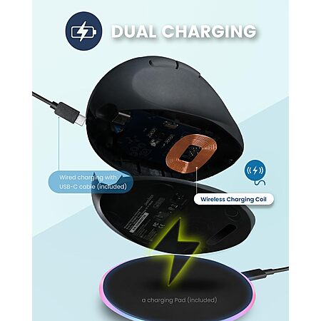 Perixx Wireless Rechargeable Ergonomic Mouse w/ Charging Pad (Black) $23.42 + Free Shipping w/ Prime or on $35+