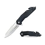 Model: Tac-Force Tactical Folding Knife, 8 Inch Overall Length, 3.25 Inch Satin Blade, Black Aluminum Handle, Glass Breaker, Rescue, Hunting, Camping, EDC