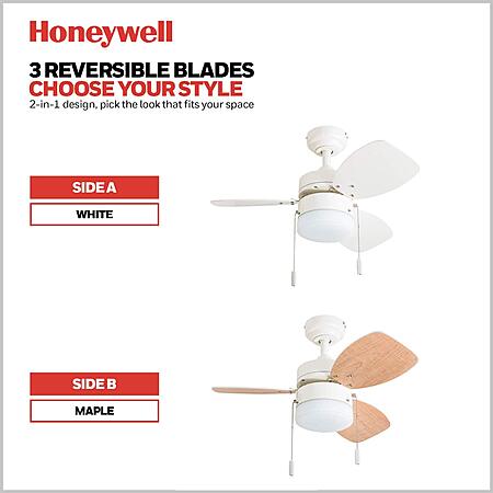 Honeywell Ocean Breeze 30" 3 Blades LED Ceiling Fan w/ Light Kit Included $42 + Free Shipping