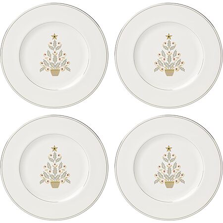 Lenox 897868 Federal Platinum Tree Accent Plates, Service For 4, Christmas Dishes, Dinnerware Set, Holiday - *YMMV - $40.65 w/ Coupon! - Ships FREE w/ Prime!*