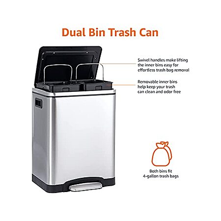 30L Amazon Basics Dual-Bin Soft-Close Trash Can w/ Foot Pedal (Stainless Steel) $49.99 + Free Shipping w/ Prime