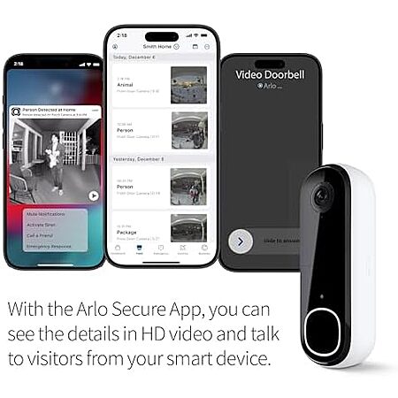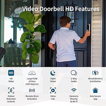 Model: Arlo Video Doorbell HD | 2nd Gen | Wireless/Wired Option, 2-Way Audio, Night Vision, Head to Toe Video View, Integrated Siren | Live Stream | Real Time Notifications |180 Deg Wide View, White
