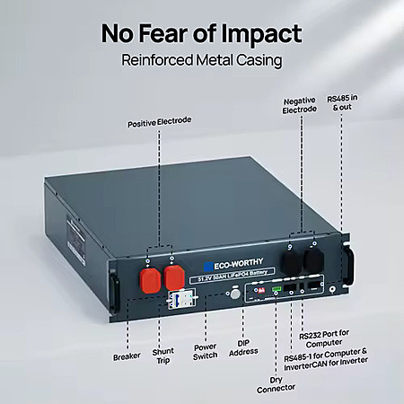ECO-WORTHY 48V 50Ah LiFePO4 Server Rack Battery, 3U Rack-Mount Lithium Battery with Bluetooth and Wi-Fi, Smart BMS, CAN/RS485 Comm $350