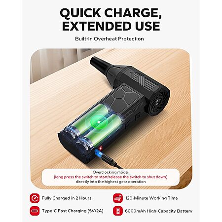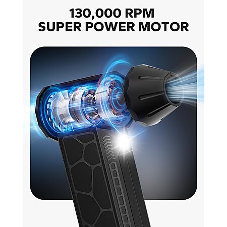 Electric Air Duster, Multi-Gear Adjustable 130000RPM, Rechargeable Air Blower with LED Light for Computer Keyboard Home Outdoor Car