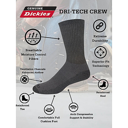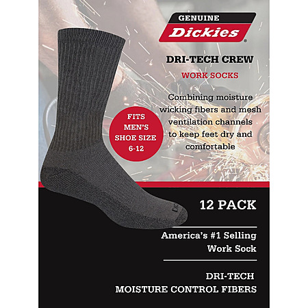 $7.49*:12 Pack Genuine Dickies Men's Dri-Tech Crew Socks Size:6-12 at Walmart.com