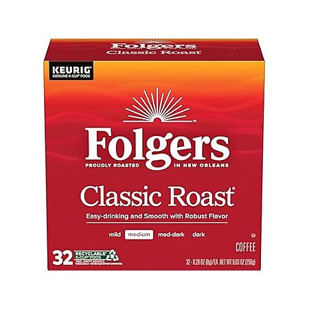 Folgers Classic Roast Coffee, Medium Roast, K Cup Pods for Keurig Coffee Makers, 32Count $12 WOOT FS PRIME (limit 3)