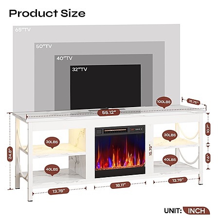 Pinmoco 55" TV Stand & Electric Fireplace w/ LED Lights (Fits TVs up to 65") $120 + Free Shipping